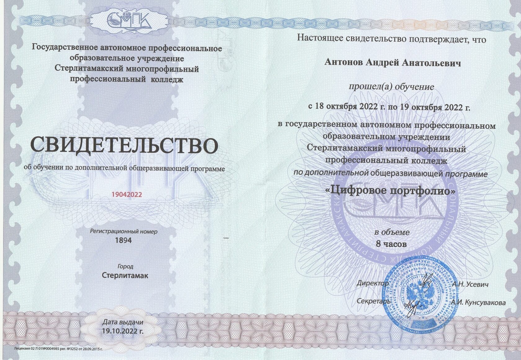 ГАПОУ СМПК, 09.02.06 Сетевое и системное администрирование (Сетевой и системный администратор)